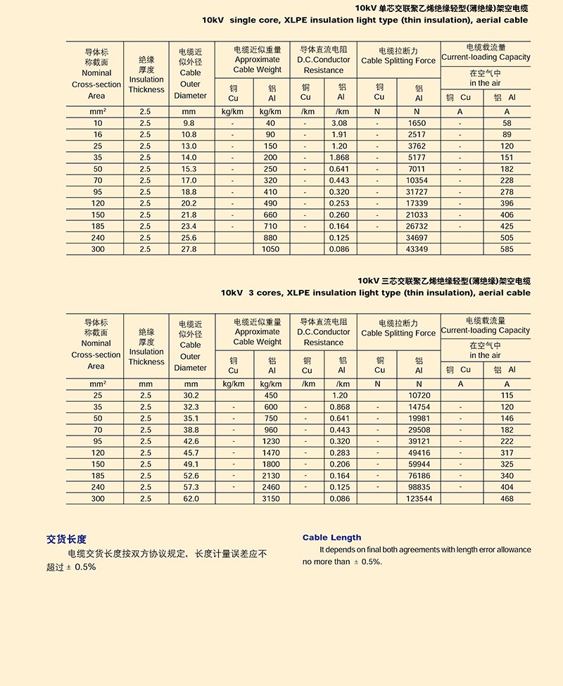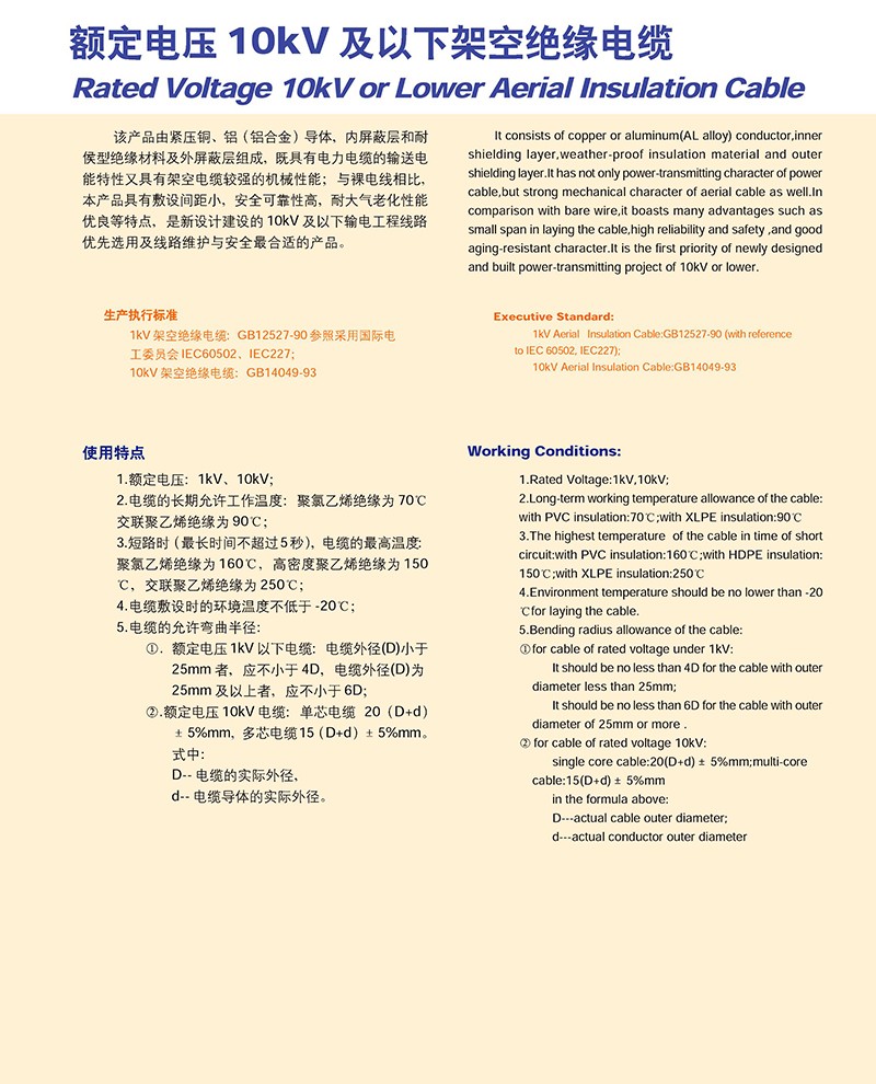 - 產(chǎn)品名稱:額定電壓10KV及以下架空絕緣電纜