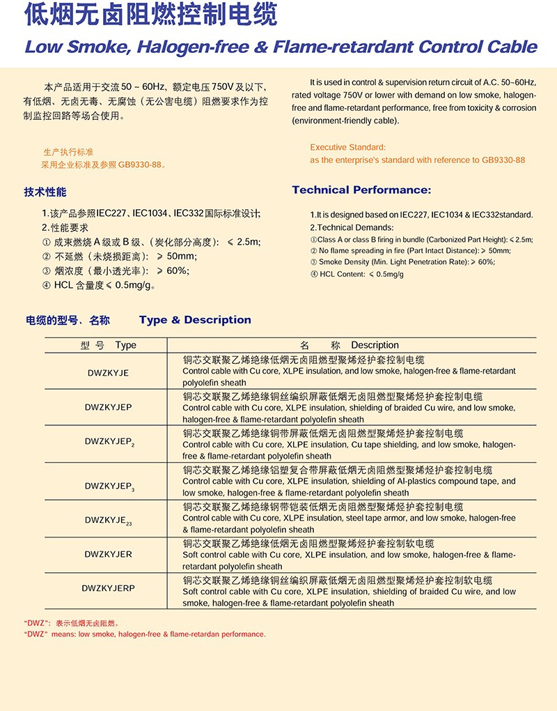 - 產(chǎn)品名稱:低煙無(wú)鹵阻燃控制電纜